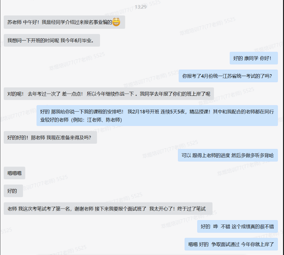 学员评价:萃煜的国家公务员考试辅导班进行的岗位职业规划指导,这使我在选择报考岗位时既根据自身兴趣与特长进行匹配,也考虑到岗位的发展前景,报考方向确定,发展思路清晰。